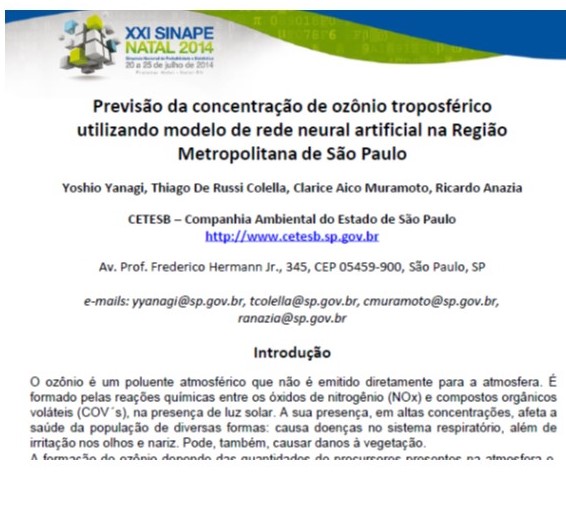 Previsão da concentração de ozônio troposférico utilizando modelo de rede neural artificial na Região Metropolitana de São Paulo