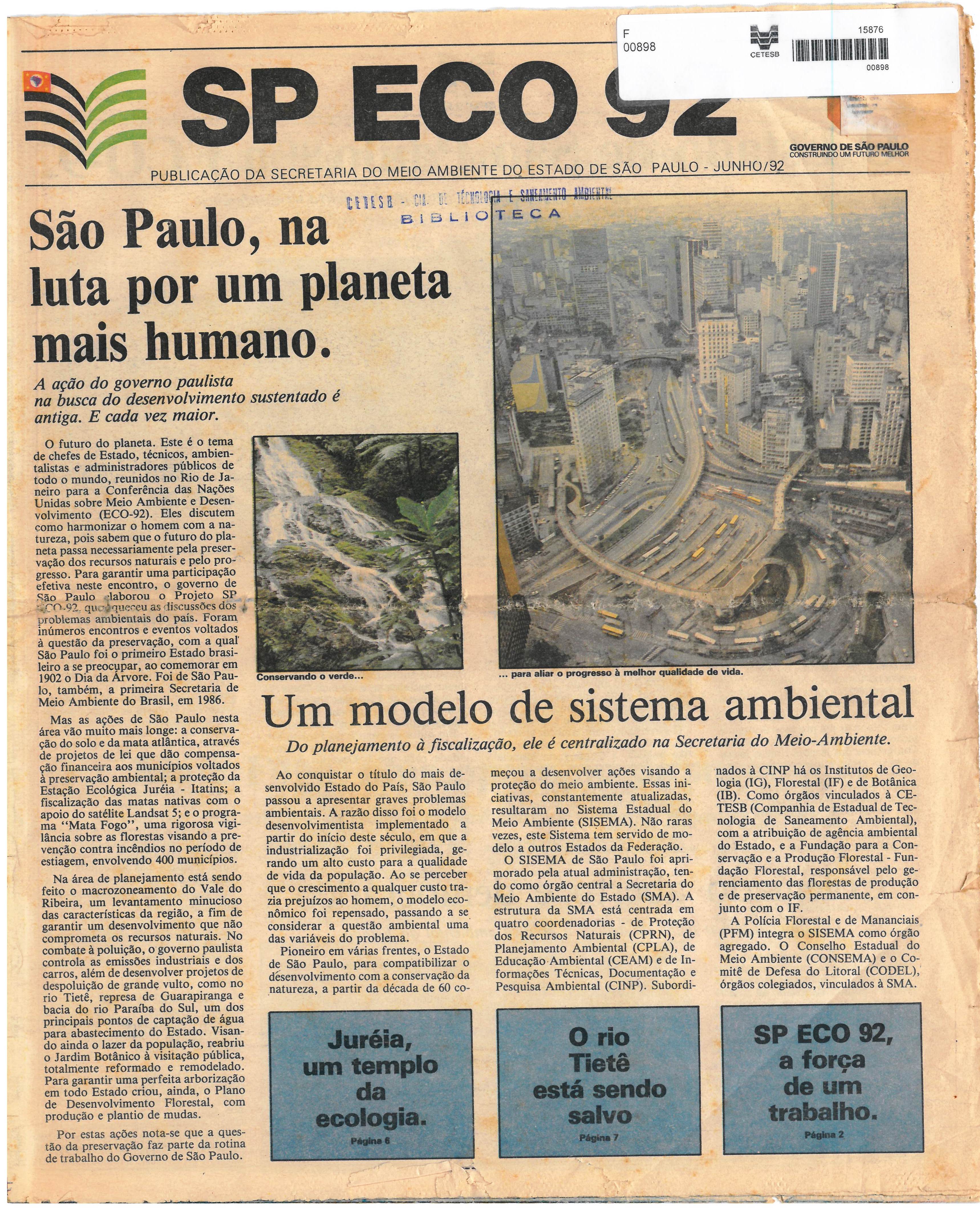 SP ECO 92: publicação da Secretaria do Meio Ambienrte do Estado de São Paulo - junho/92