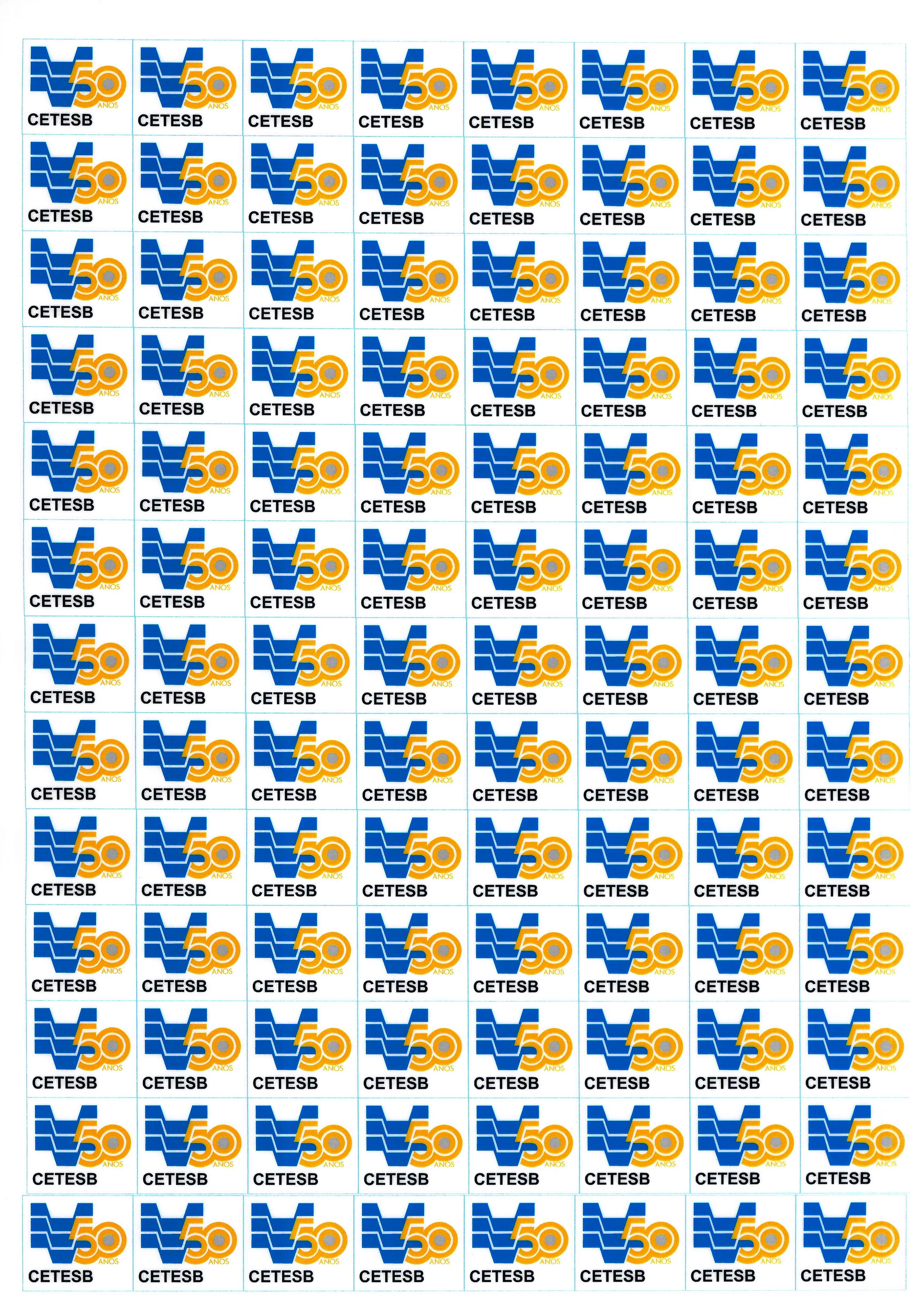 Anverso: fundo branco, logo CETESB na cor azul, inscrições na cor preta e amarela, il. color. Transcrição: [Logo CETESB] CETESB 50 anos