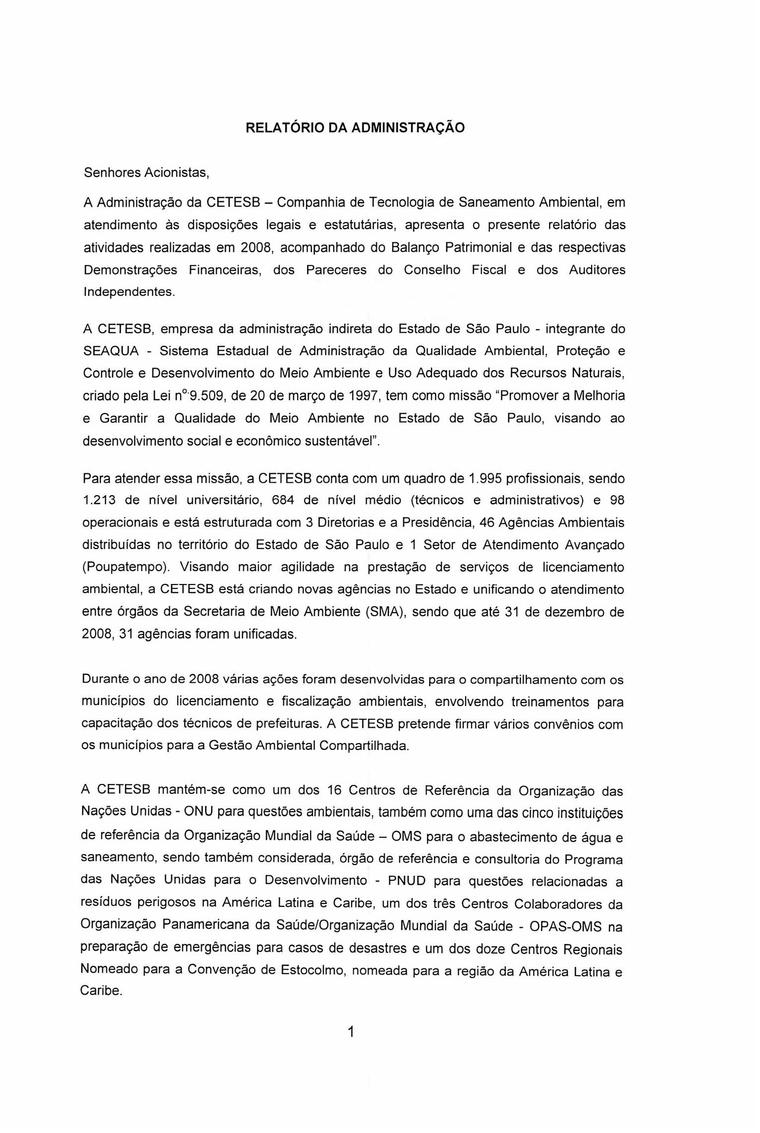 Relatório da administração 2008