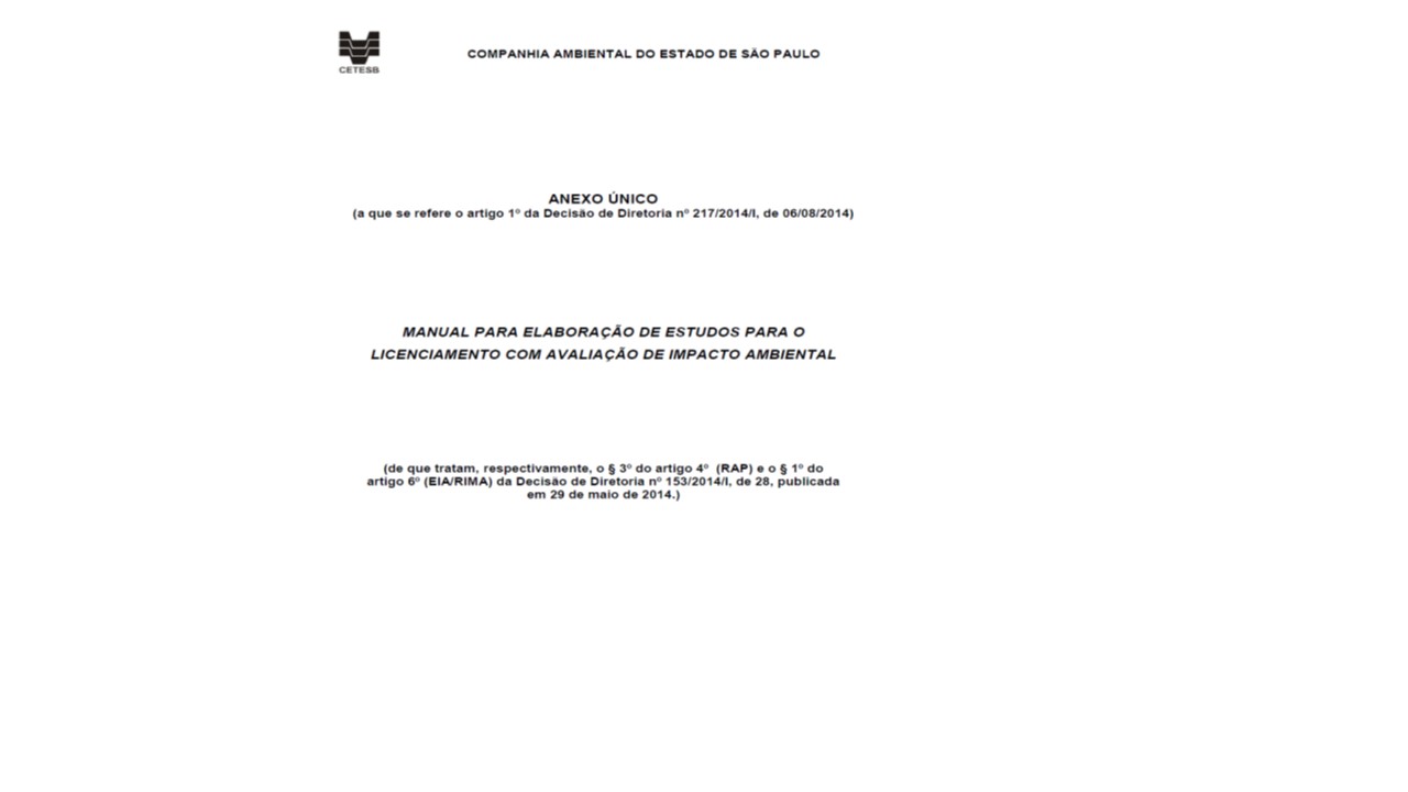 Impactos ambientais , Licenciamento , Prevenção da poluição , Proteção ambiental , Biodiversidade , Avaliação , Manuais , EIA , RIMA , Arquivo técnico , Memória institucional