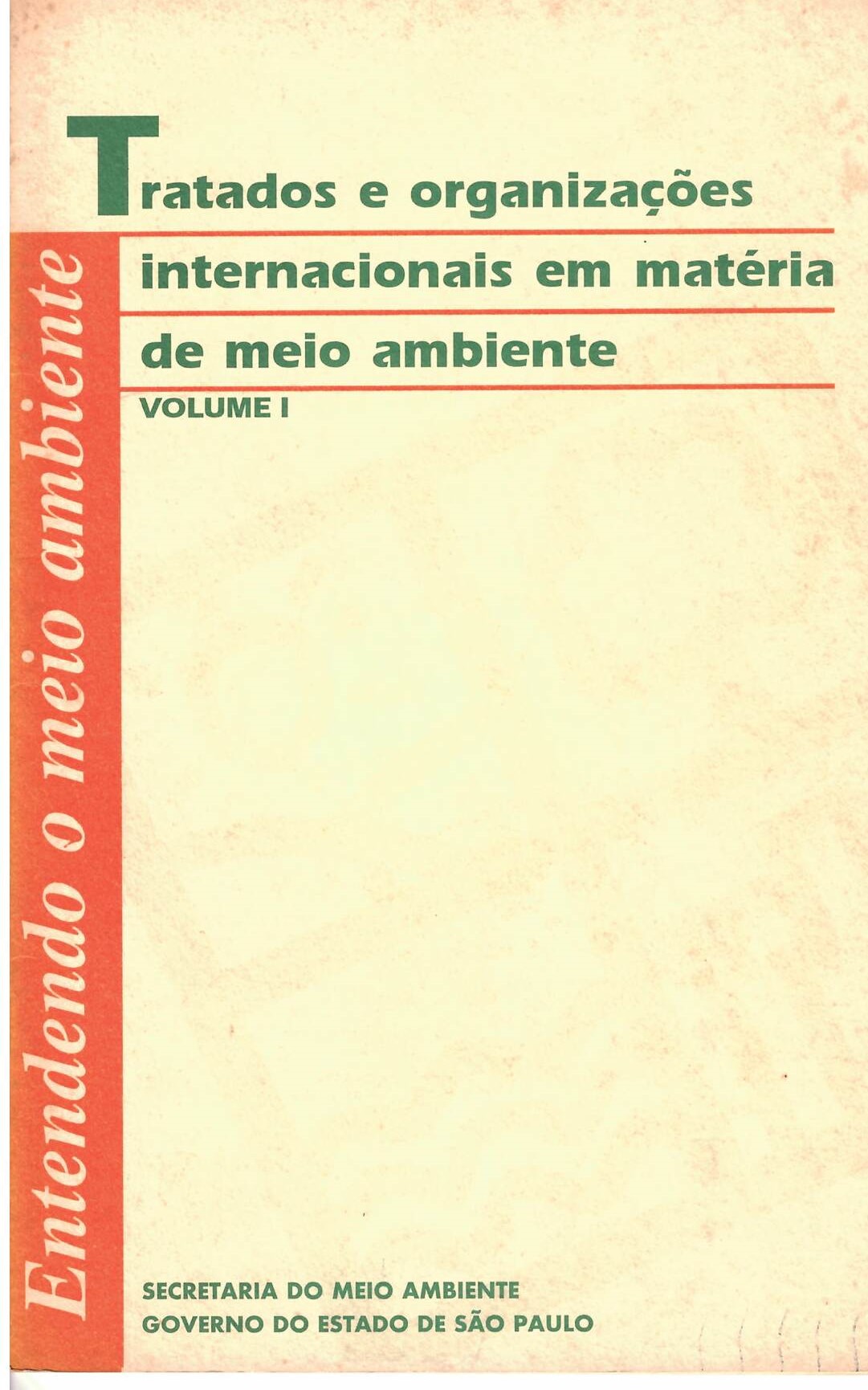v.1 : Tratados e organizações ambientais em matéria de meio ambiente. 33p. v.2 : Convenção da biodiversidade. 47p. v.3 : Convenção de RAMSAR : sobre zonas úmidas de importância internacional especialmente como habitat de aves aquáticas. 23p. v.4 : Convenção sobre o comércio internacional das espécies da fauna e flora selvagens em perigo de extinção (CITES). 69p. v.5 : Convenção de Viena para a proteção da camada de ozônio e protocolo de Montreal sobre substâncias que destroem a camada de ozônio. 71p. v.6 : Convenção sobre mudança do clima. 50p. v.7 : Convenção da Basileia sobre o controle de movimentos transfronteiriços de resíduos perigosos e seu depósito. 62p. v.8 : Cooperação internacional. 35p. v.9 : Programa estadual de apoio as ONGs - PROAONG - atividades desenvolvidas 1995-6. 94p. v.10 : Bancos multilaterais de desenvolvimento e meio ambiente - o Banco Mundial e o Banco Interamericano de Desenvolvimento. 45p. v.11 : A União Europeia e a legislação ambiental 137p. v.12 : O Mercosul e o meio ambiente. 64p. v.13 : Convenção das Nações Unidas sobre o Direito do Mar. 323p. v.14 : ISO 14000 - sistema de gestão ambiental. 71p.