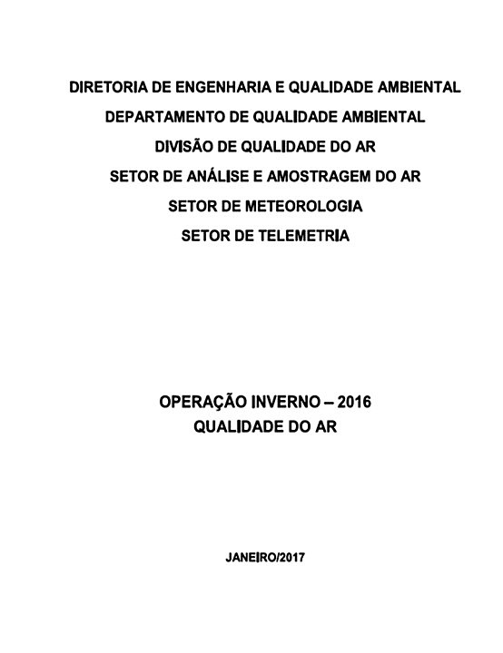 Qualidade do ar , Controle da qualidade do ar , Poluentes atmosféricos , Operação inverno , RCET , Arquivo técnico , São Paulo (BR) , São Paulo (RMSP) , Baixada Santista