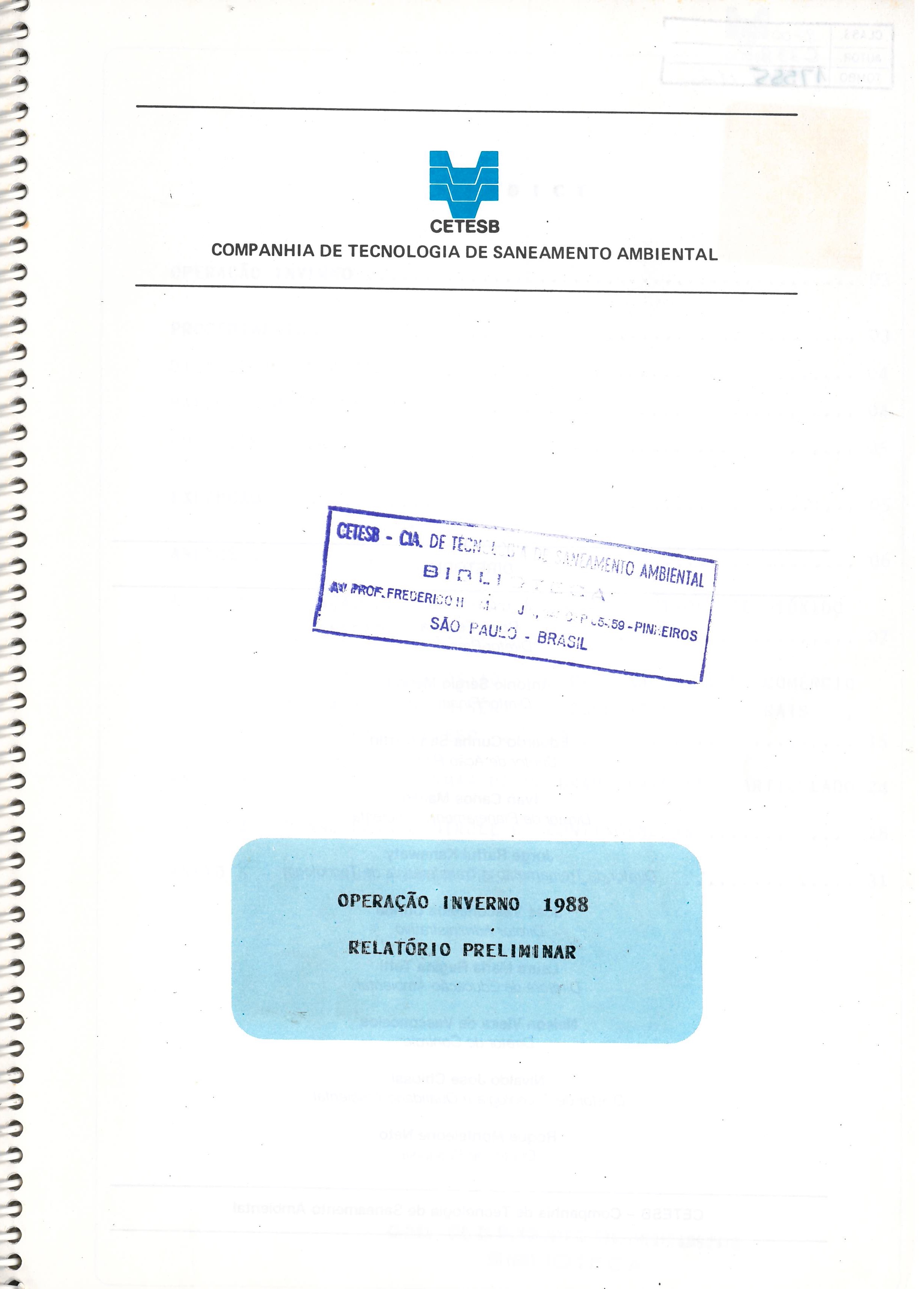 Operação inverno 1988: relatório preliminar