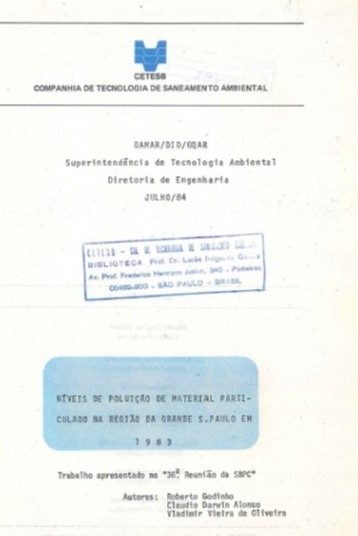 Poluição do ar , Partículas , Material particulado , RCET , Arquivo técnico , Sao Paulo (BR)
