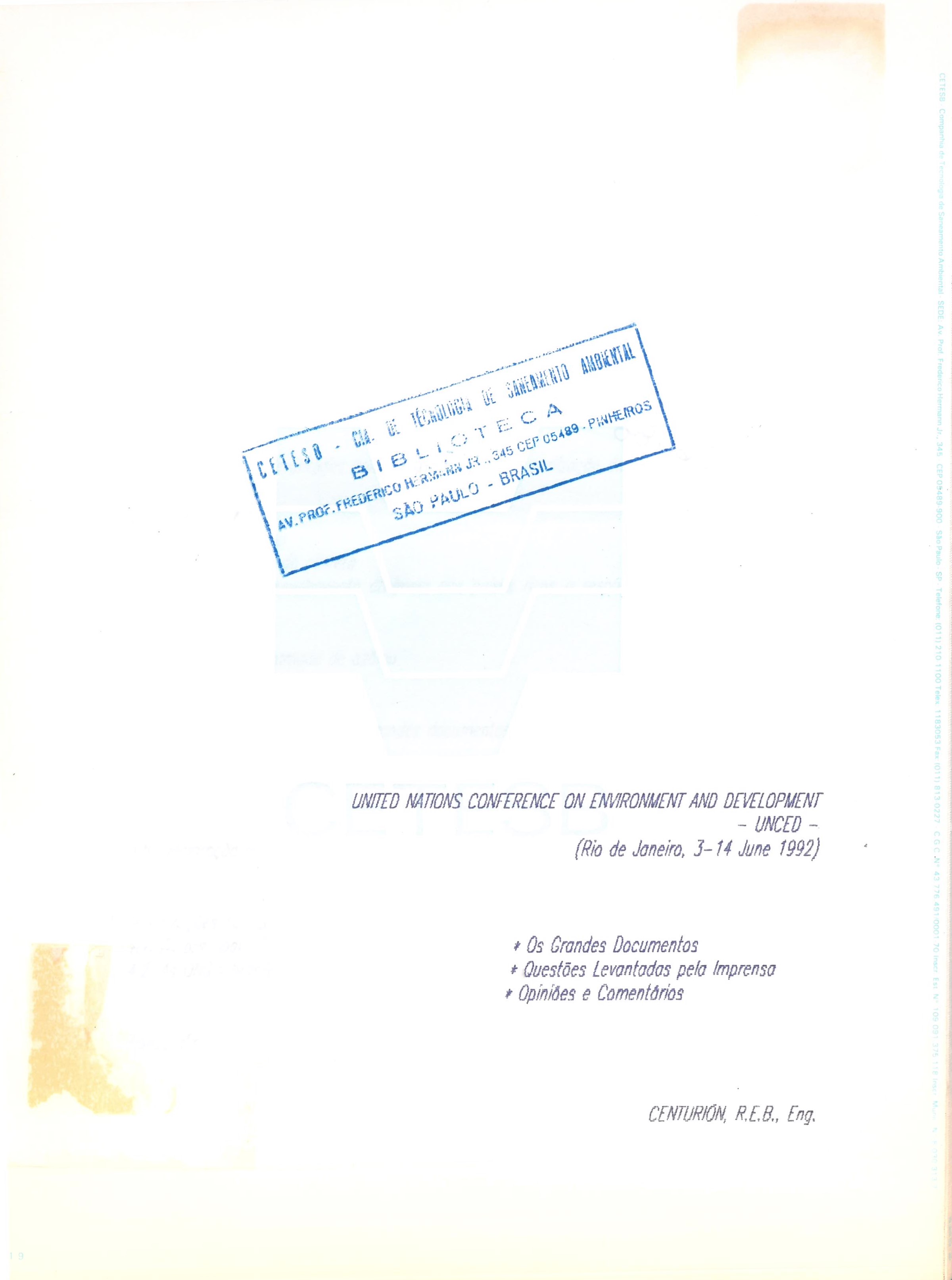 United Nations Conference on Environment and Development - UNCED (Rio de Janeiro, 3-14 June 1992): os grandes documentos, questões levantadas pela imprensa, opiniões e comentários