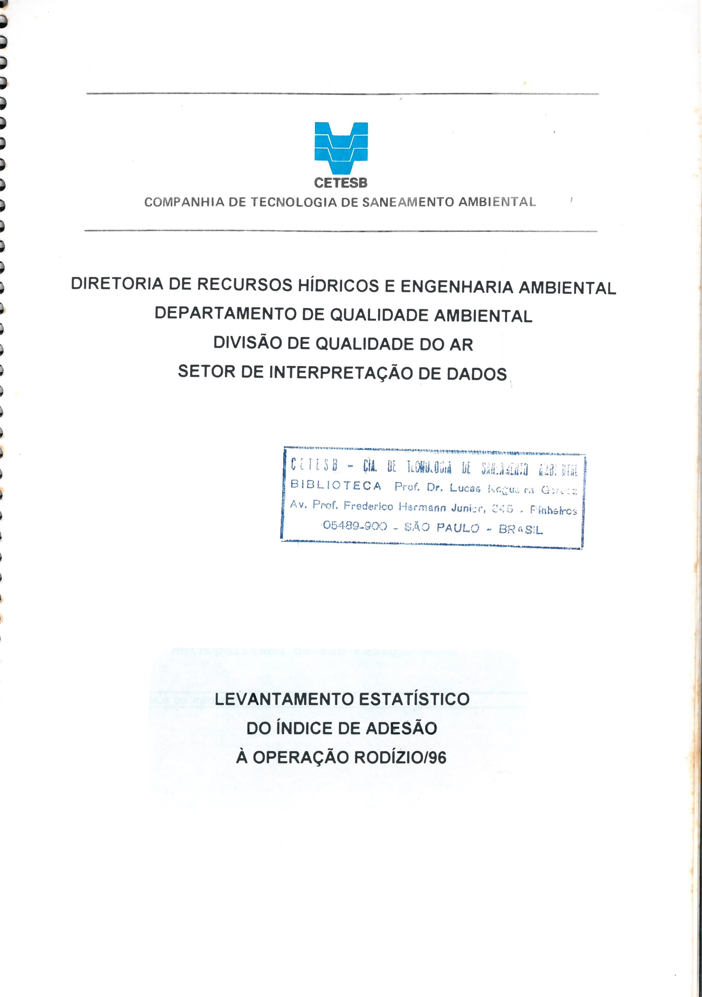 Levantamento estatístico do índice de adesão a Operação rodízio 1996