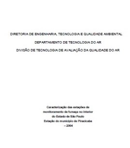 Qualidade do ar , Redes de monitoramento , Fumaça , Fontes de poluição , RCET , Arquivo técnico , Piracicaba (BR)