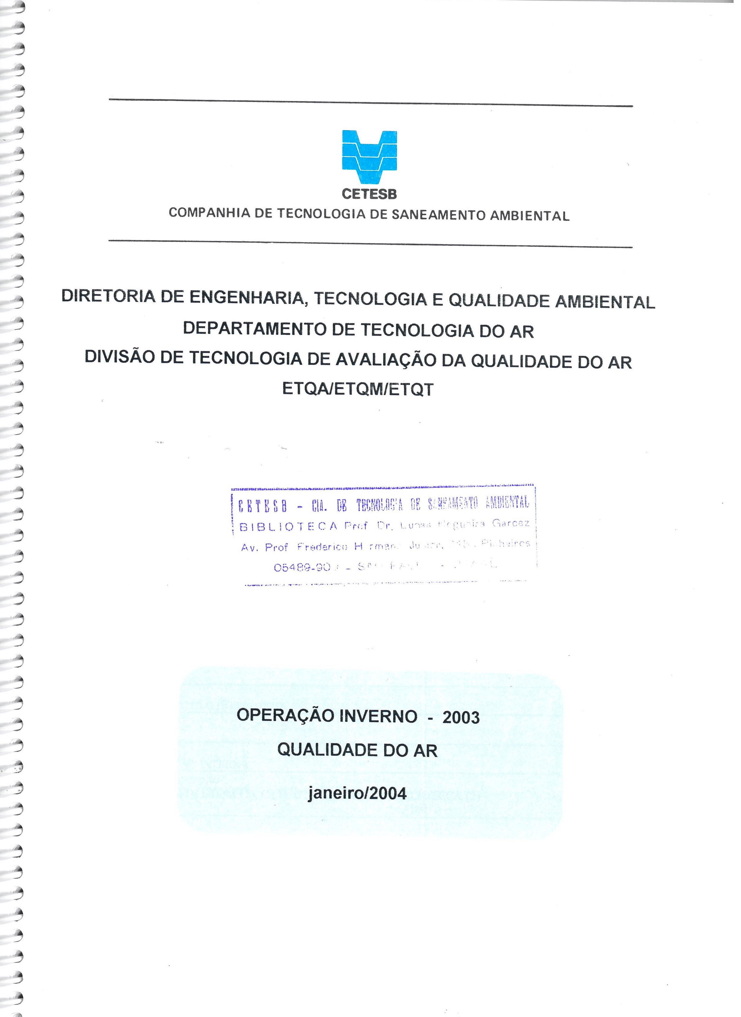 Operação inverno 2003: qualidade do ar