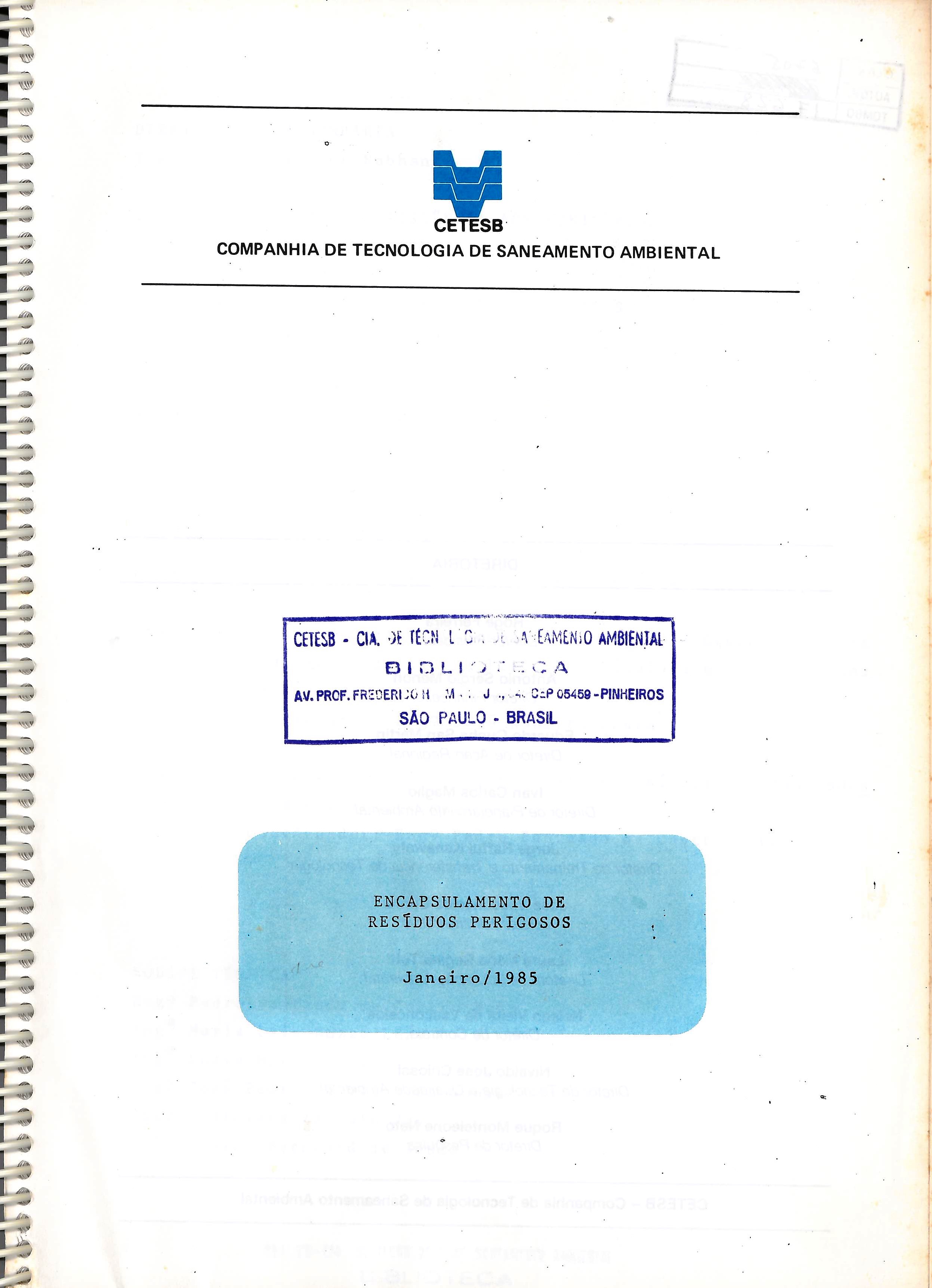 Resíduos sólidos perigosos , Disposição de resíduos sólidos , Encapsulamento , RCET , Arquivo técnico