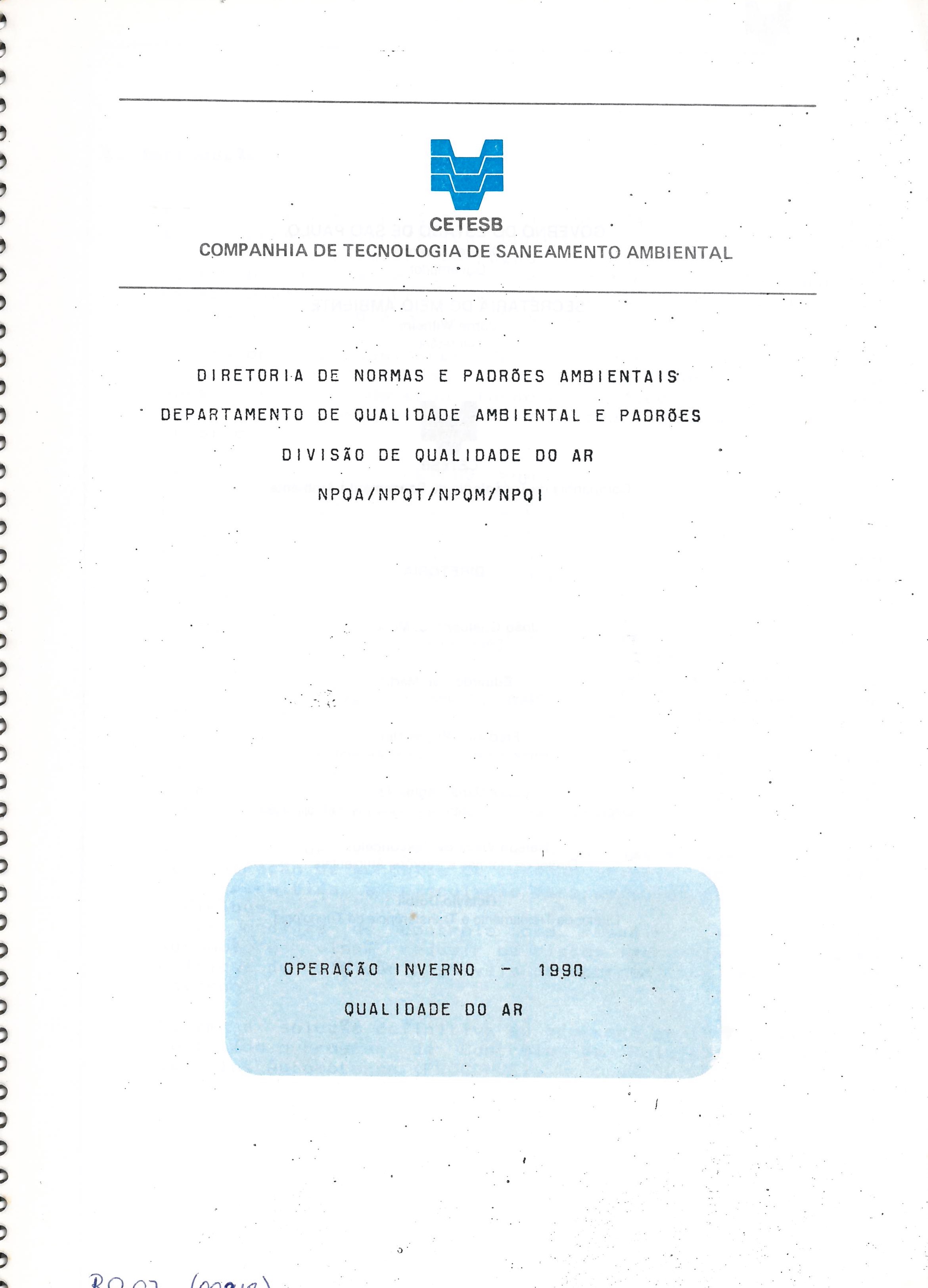 Controle da poluição do ar , Operação inverno , Poluição do ar , CETESB , RCET , Arquivo técnico , Memória