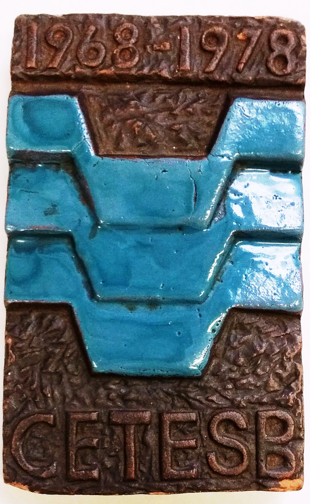 Placa 1: Foi recebida pelo funcionário Quím. Ivan Ronaldo Horcel em 1978, por ocasião do cumprimento do jubileu de 10 anos de serviços prestados ao CETESB – Centro Tecnológico de Saneamento Básico. Em 1968 o sr. Ivan trabalhava da Estação de Tratamento do Alto da Boa Vista e em dez. 1969 veio para Pinheiros – no prédio 5, com uma pequena equipe. Peça doada ao CM CETESB em nov. 2016 pelo próprio funcionário. Placa 2: Foi recebida pelo funcionário Aristides Almeida Rocha em 1978, também por ocasião do cumprimento do jubileu de 10 anos de serviços prestados ao CETESB – Centro Tecnológico de Saneamento Básico. Peça doada ao CM CETESB em out. 2018 pelo próprio funcionário.