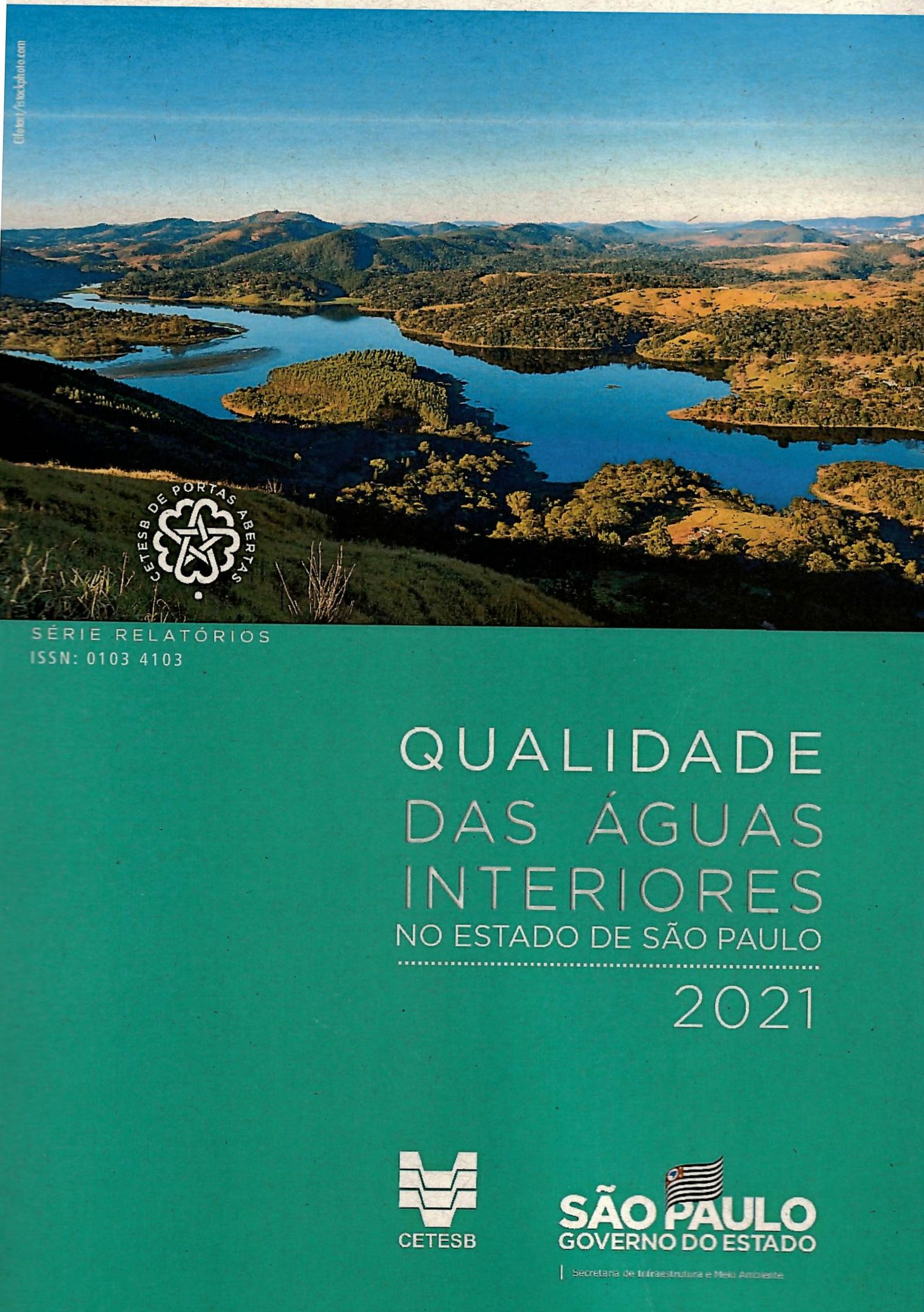 v.1: 285 p. papel - Relatório v.2: Pen drive com apêndices e anexos Apêndice A – Aspectos descritivos e quantitativos da rede de monitoramento – 2021 Apêndice B – Descrição dos pontos de amostragem planejados para 2021 Apêndice C – Significado ambiental e sanitário das variáveis de qualidade das águas e dos sedimentos metodologias analíticas e de amostragem Apêndice D – Relação das variáveis por ponto de amostragem – 2021 Apêndice E – Índice de Qualidade das Águas Apêndice F – Quantitativo de postos pluviométricos – 2021 Apêndice G – Intensidade de Chuvas por UGRHI - 2021 Apêndice H – Mapa das redes de monitoramento por UGRHI – 2021 Apêndice I – Índice de Abrangência Espacial do Monitoramento – IAEM Apêndice J – Dados de saneamento por município – 2021 Apêndice K – Porcentagem de resultados não conformes para a Classe 2 e por classe atual de enquadramento por ponto de monitoramento - 2021 Apêndice L – Resultados do Monitoramento – 2021 Apêndice M – Média Anual dos Índices de Qualidade (2016 a 2021) Apêndice N – Dados Brutos das variáveis de Água e Sedimento – 2021 Apêndice O – Perfis de Oxigênio Dissolvido e Temperatura – 2021 Apêndice P – Vazões e Cargas de COT e Fósforo – 2021 Apêndice Q – Resultados analíticos e classificação semanal das praias de rios e reservatórios – 2021 Apêndice R – Ocorrências de mortandade de peixes – 2021