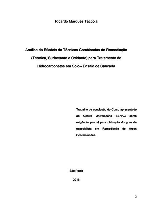 Análise da eficácia de técnicas combinadas de remediação (térmica, surfactante e oxidante) para tratamento de hidrocarbonetos em solo: ensaio de bancada