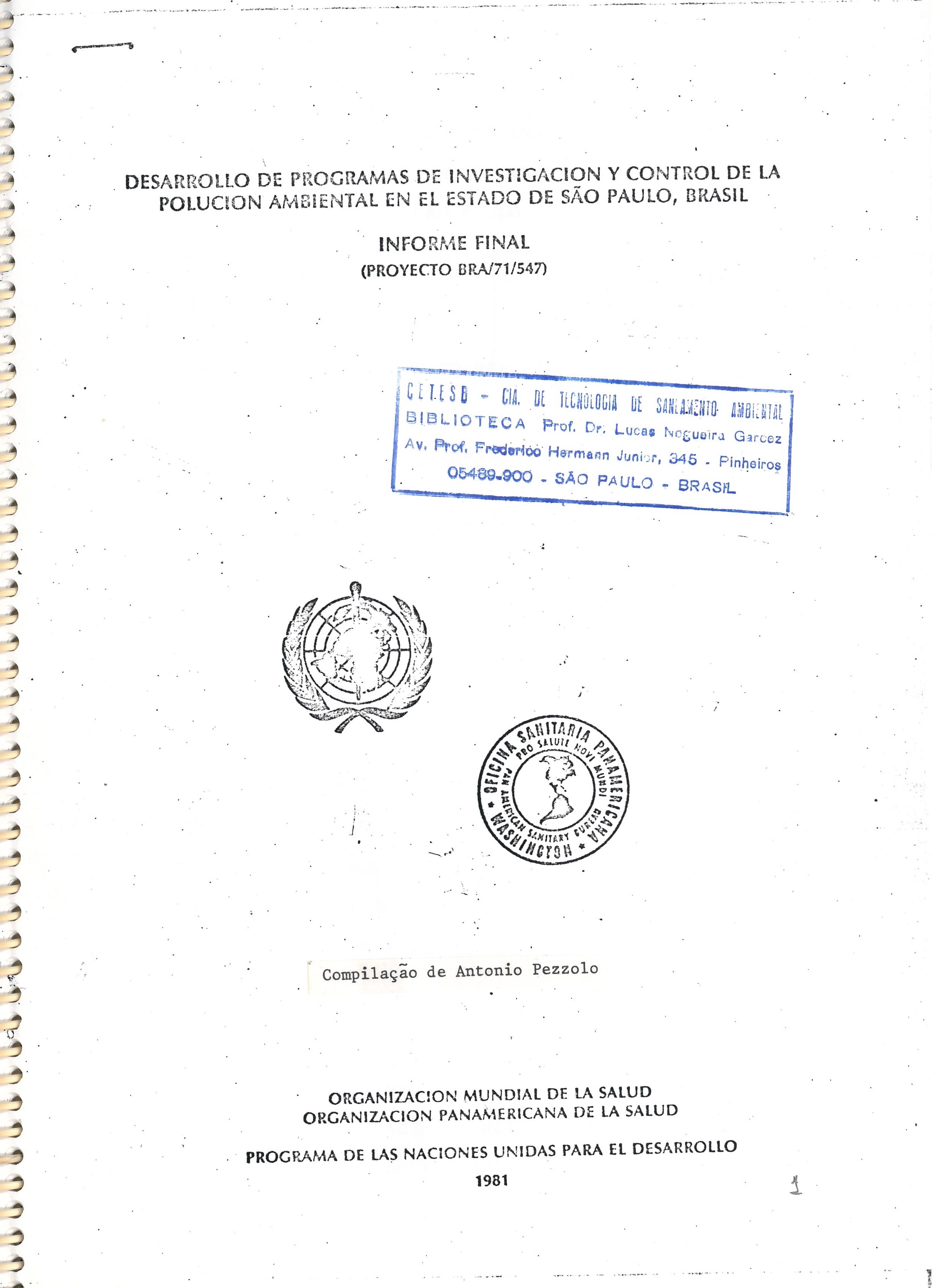 Desarrollo de programas de investigacion y control de la polucion ambiental en el Estado de Sao Paulo - Brasil: informe final
