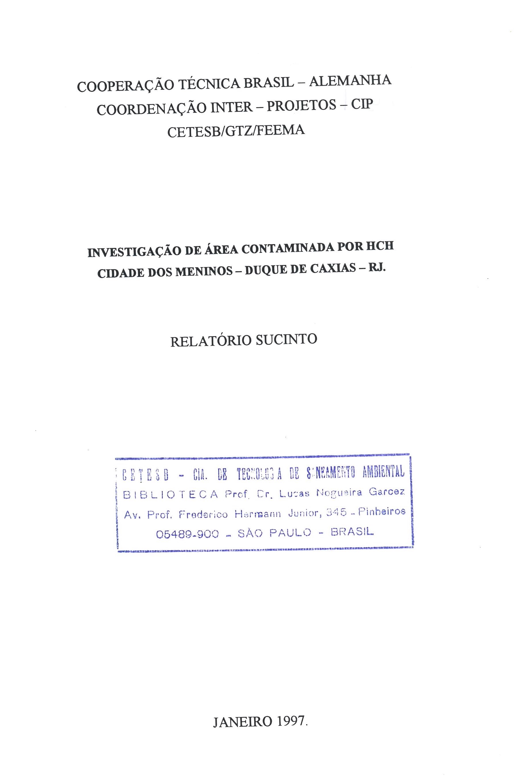 Investigação de área contaminada por HCH em Cidade dos Meninos - Duque de Caxias - RJ : relatório sucinto