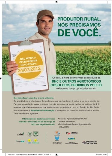 Chegou a hora de informar os resíduos de BHC e outros agrotóxicos obsletos proibidos por lei existentes nas propriedades rurais
