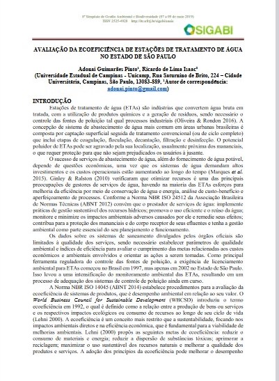 Avaliação da ecoeficiência de estações de tratamento de água no estado de São Paulo