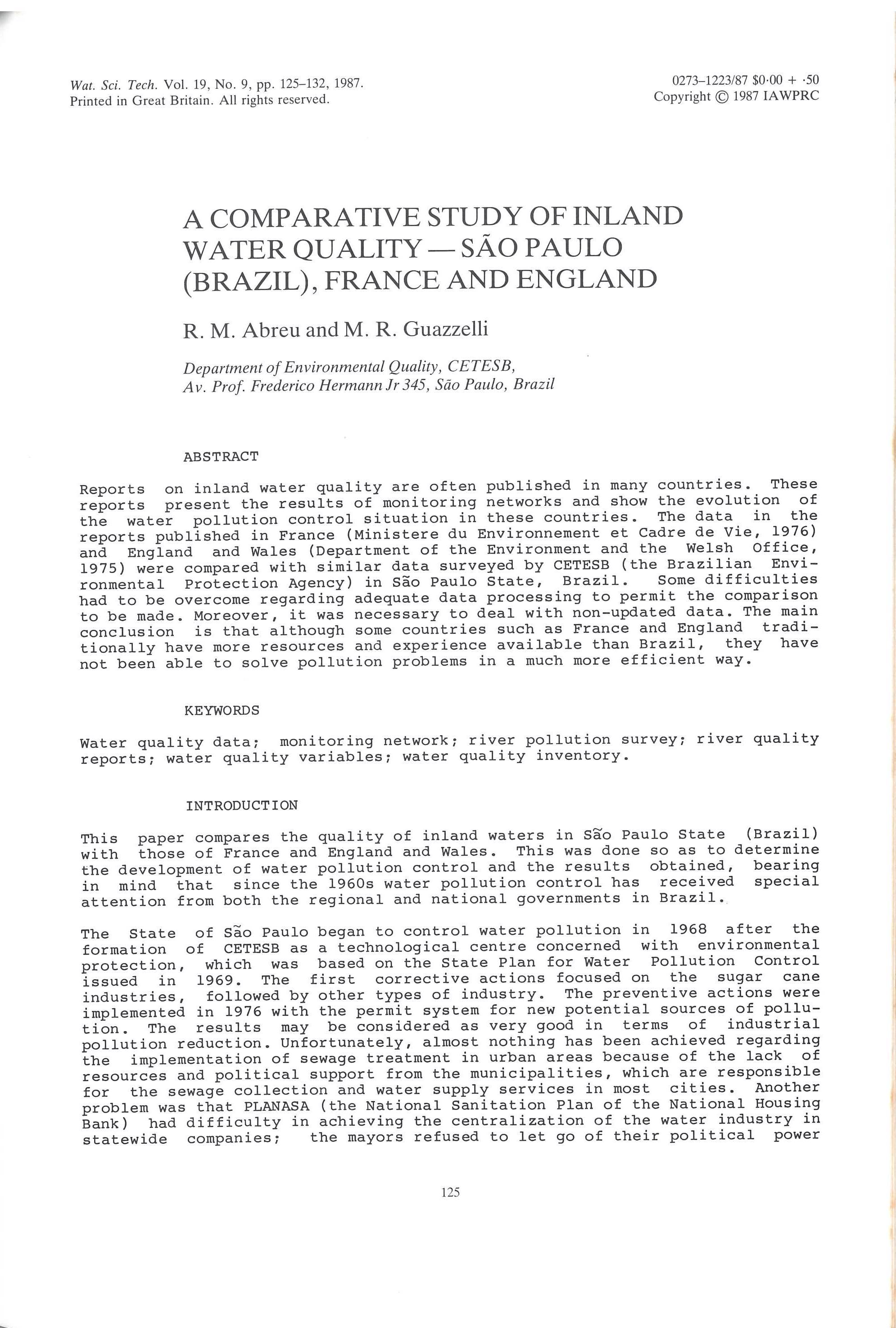 Qualidade da água , Poluição de rios , Monitoramento da água , São Paulo (BR) , França , Inglaterra