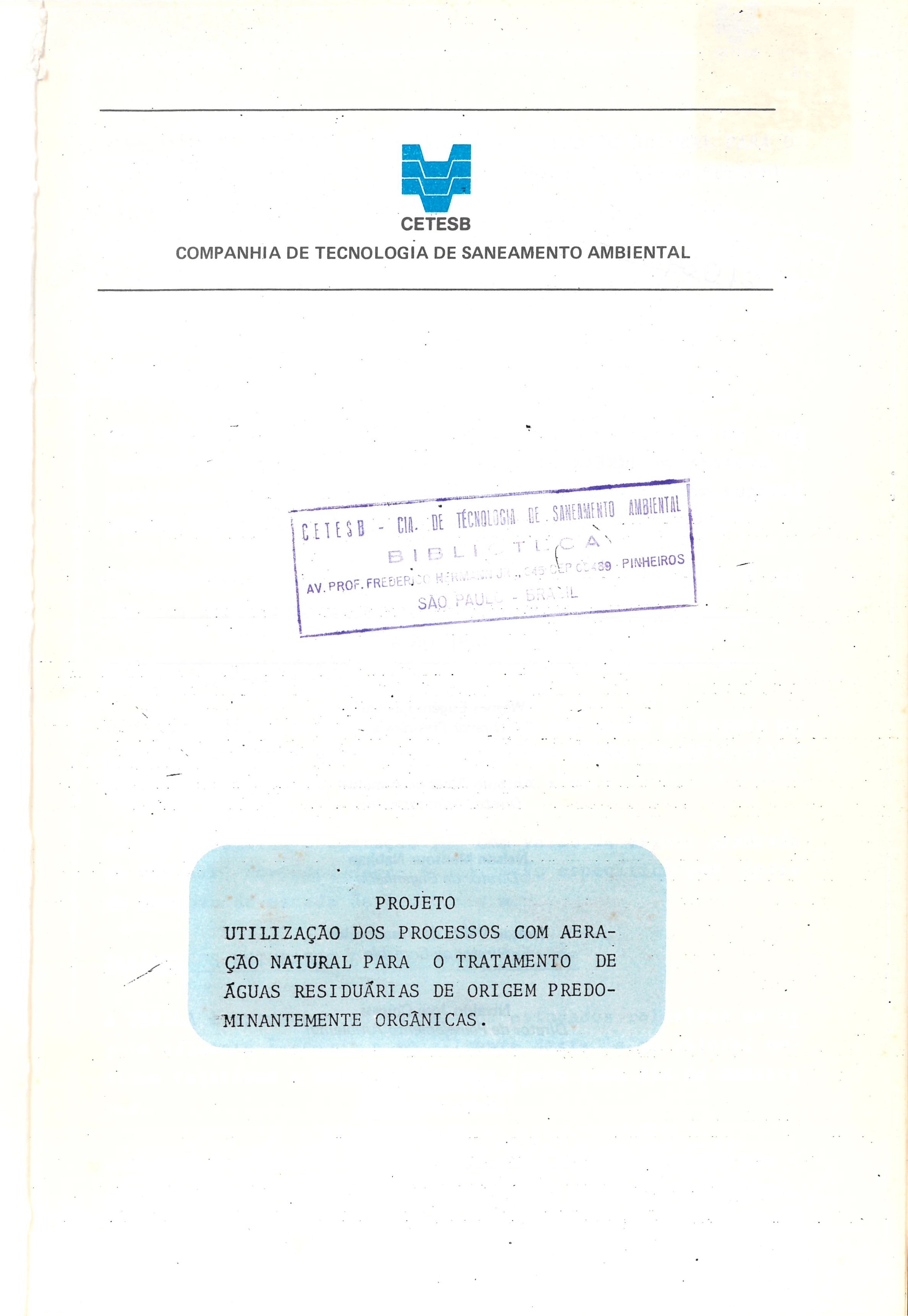 Utilização dos processos com aeração natural para o tratamento de águas residuárias de origem predominantemente orgânicas: projeto