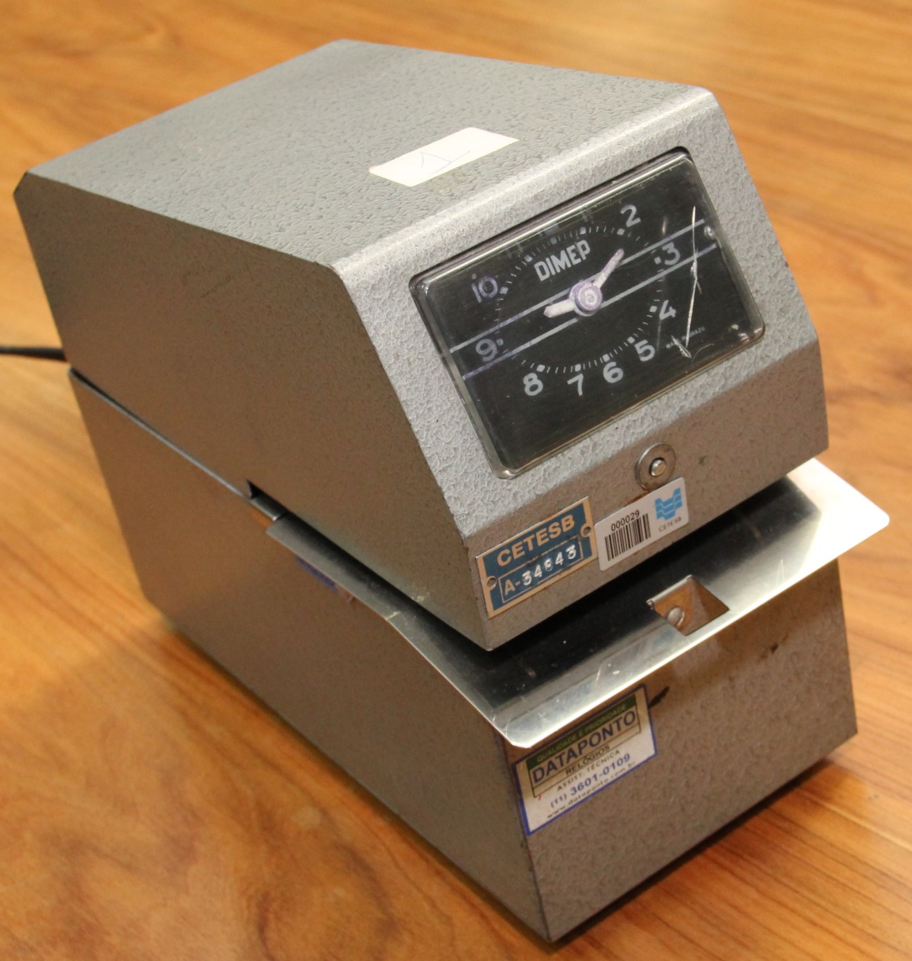| Descrição | Equipamento adquirido pela CETESB em 02/03/2001 (NFF 63726 série A). Utilizado no Protocolo Geral da CETESB para registro de recepção de correspondências e demais documentos até 2014. Foi desativado quando perdeu a capacidade de operar eficientemente, por não ser encontrado no mercado peças para reposição. |