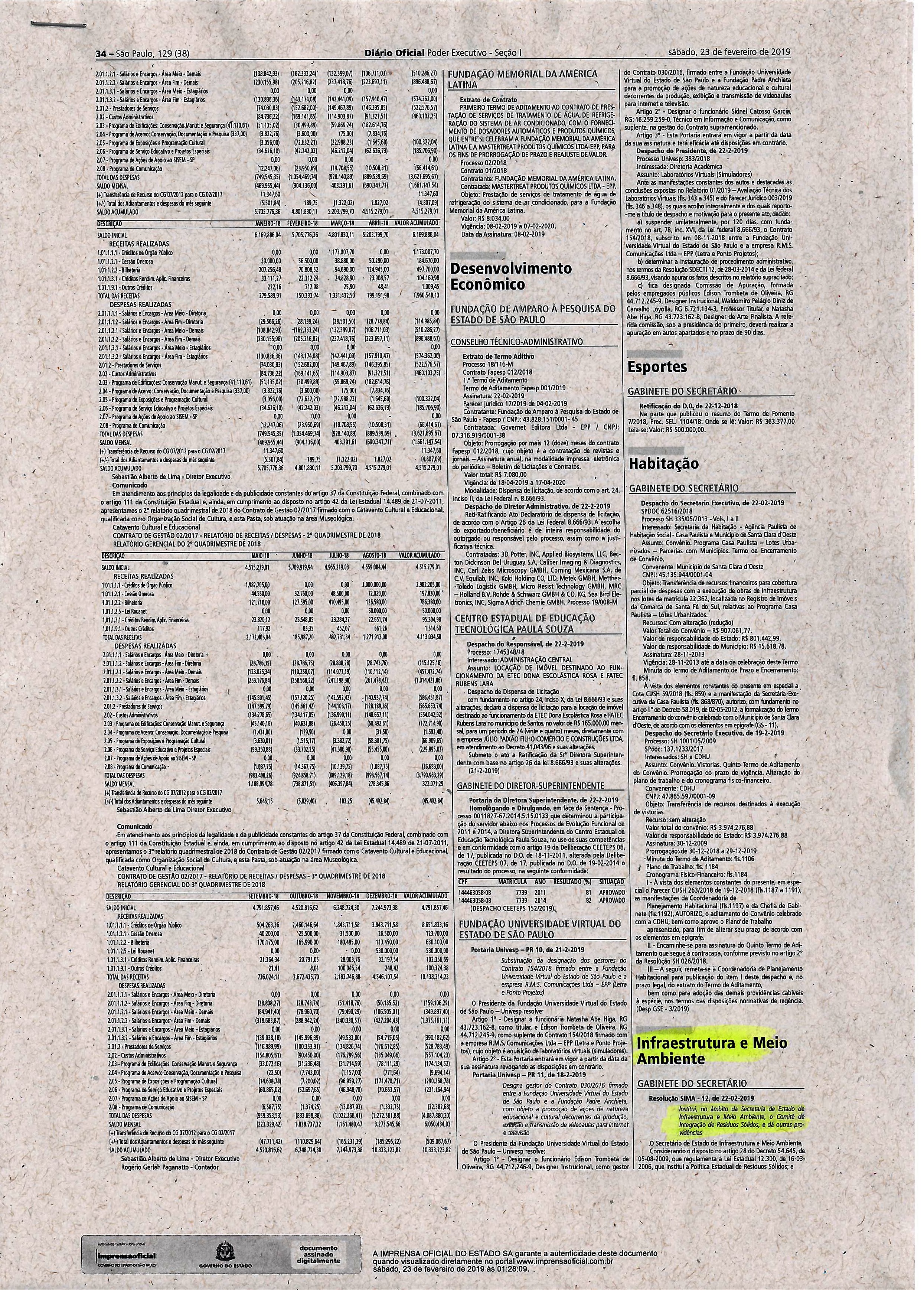 Resolução conjunta SIMA de 22.02.2019