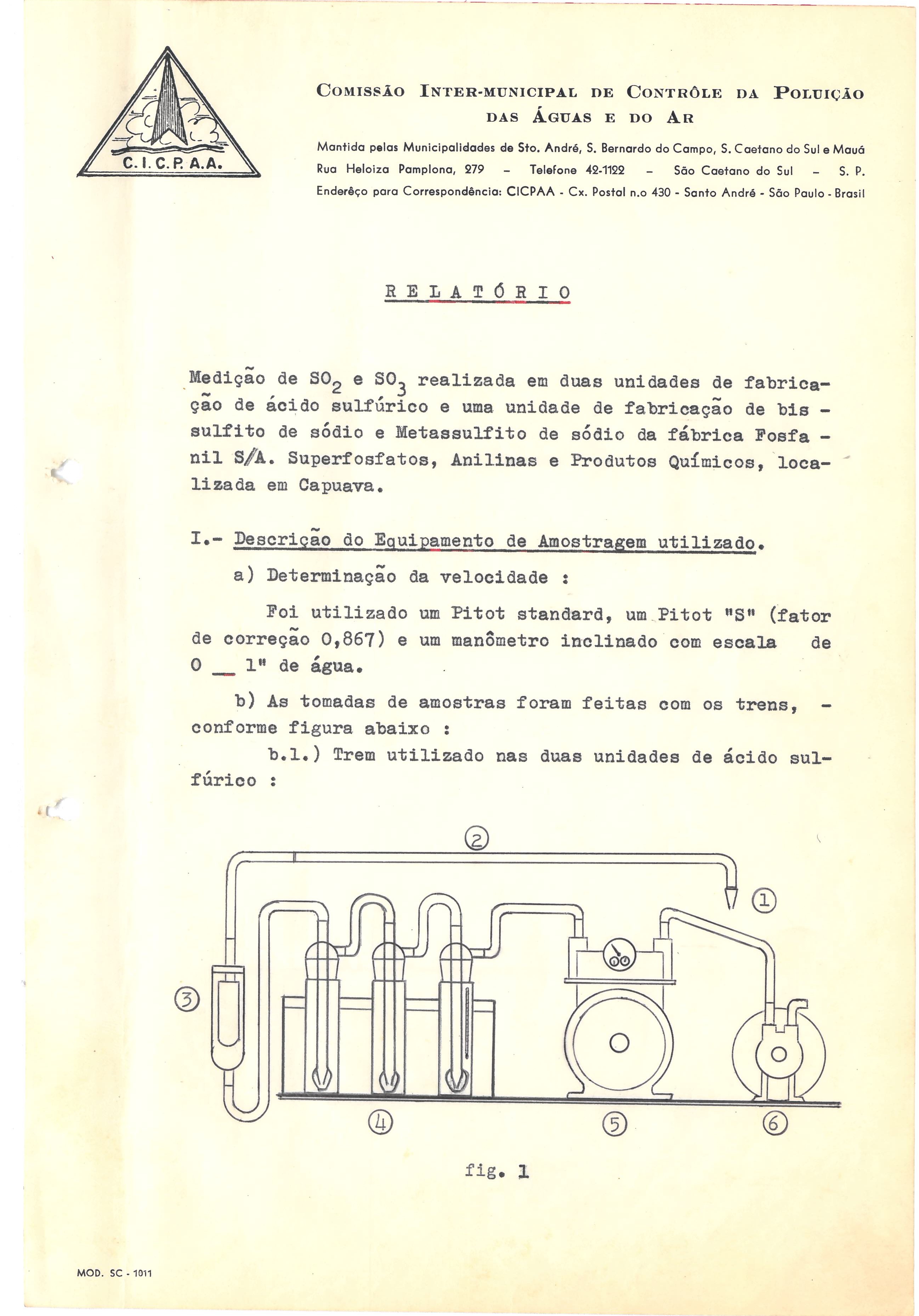 Medição de SO2 eSO3 realizada em duas unidades de fabricação de ácido sulfúrico e uma unidade de fabricação de bissulfito de sódio e metassulfito de sódio da fábrica Fosfanil S/A superfosfatos, anilinas e produtos químicos localizada em Capuava: relatório