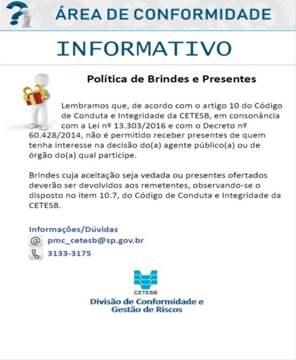 Área de conformidade: informativo: poílitca de brindes e presentes