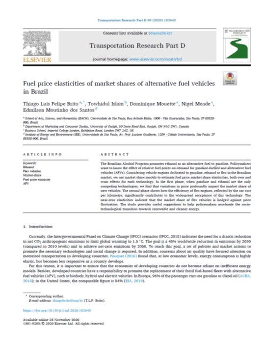 | Título | Fuel price elasticities od market shares of alternative fuel vehicles in Brazil | |