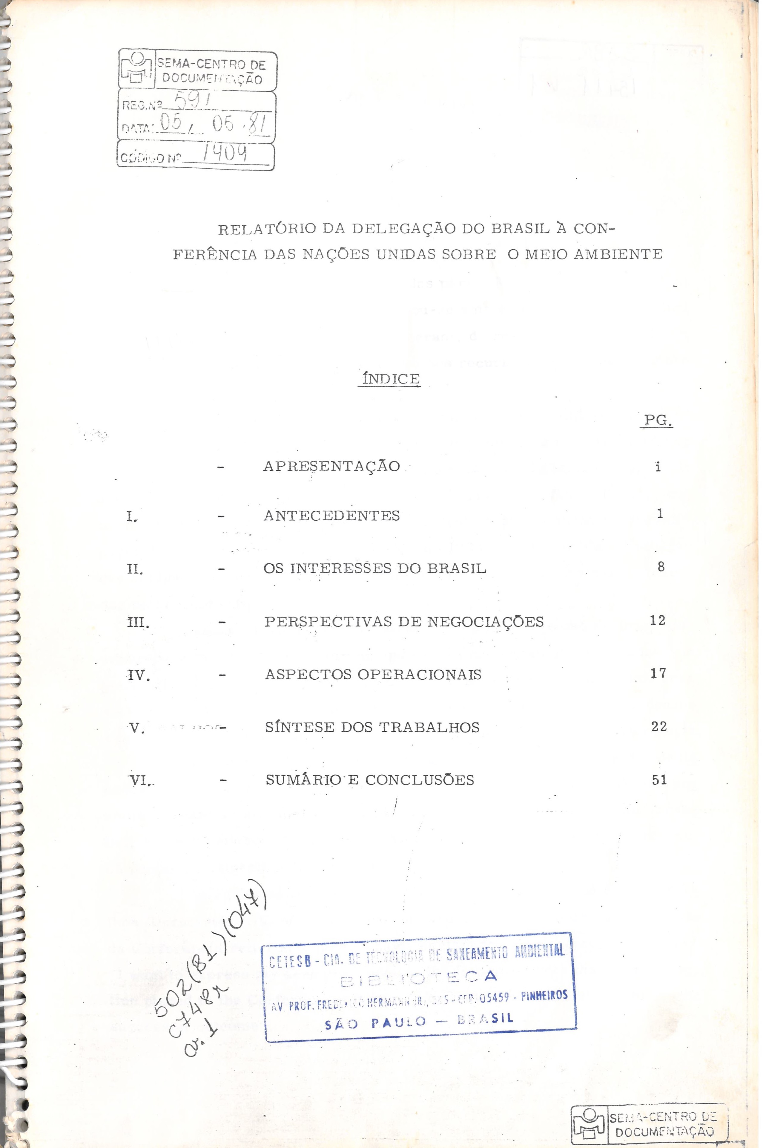 | Título | Relatório da delegação do Brasil à conferência das Nações Unidas sobre o Meio Ambiente | |
